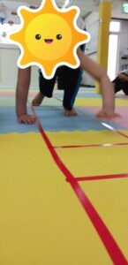 ウシガエル跳びが難しいお友だちもクマ歩きで参加します🐻