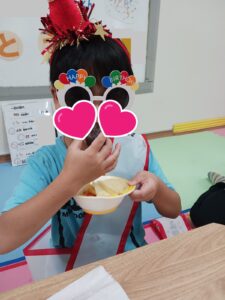 プレゼントを受け取ったあとは、お誕生日特別メニューのおやつを食べます🍩