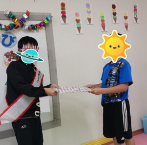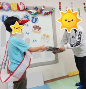 少し照れ臭そうにしているお友だちもいましたが和気あいあいとした雰囲気でプレゼントを渡します🤗