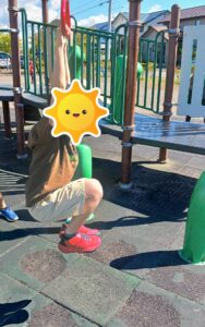 公園へ行く前に、遊具で鬼ごっこをしないや周りを見て行動をするなどのお約束をして出発しました!