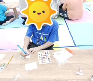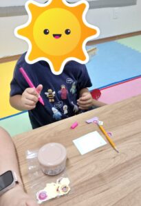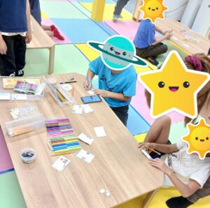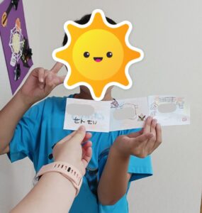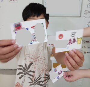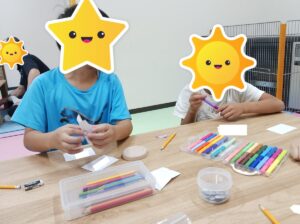 みんな自分の好きな色を使って字を囲ったり絵を描いたりオリジナリティをだしていました😄