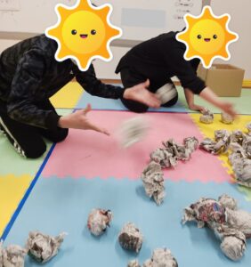 相手のコートに新聞ボールを多く投げいれることが出来た人の勝利となります😄