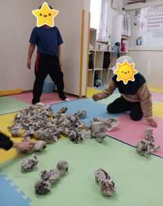 10月27日(月)の集団活動は「新聞合戦」でした🗞
