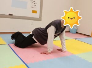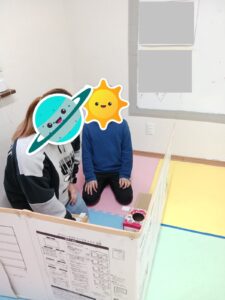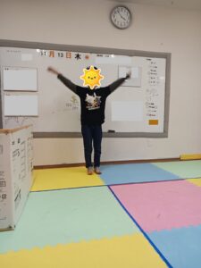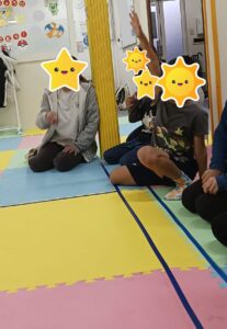 こどもプラスでジェスチャーゲームをしたことがない児童もいた為、高学年のお友達にお手本をしてもらいつつルールを説明します😊