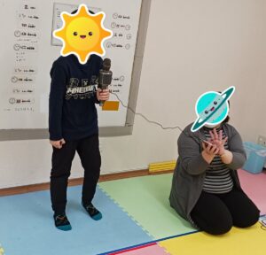 本格的なマイクで子どもたちは大盛り上がりでした😄