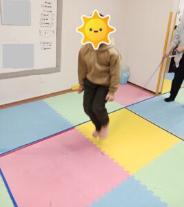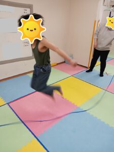 縄が来るタイミングでジャンプはできるのですが、立ち位置が大きく動いてしまい連続ジャンプが難しいようでした😖