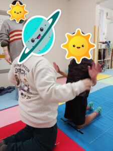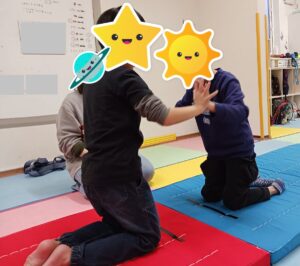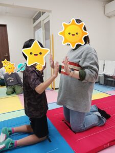 今まで何度かしたことのある活動ですが今回は未就学児童が多かった為、相手の手を押す練習から行いました🔰