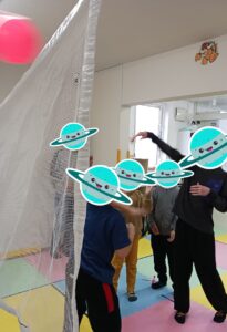 2月24日(火)の集団活動は「風船バレー」でした!🎈