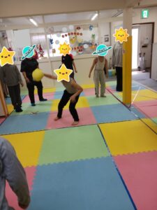 お弁当を食べる前にこども会議で決めた活動の転がしドッヂボールを楽しみました!