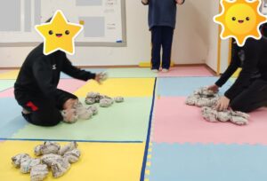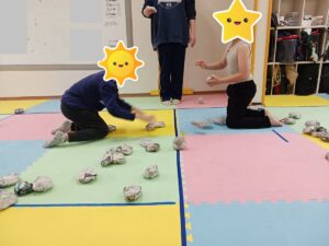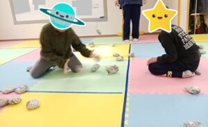 遠くから投げると相手コートに届かないハプニングもありましたが必死に投げ入れていました💦